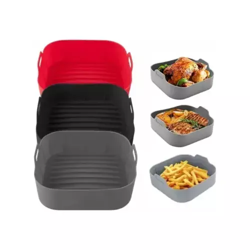 Este molde cuadrado de silicona es ideal para cocinar carnes, verduras, papas y mucho más en horno o freidora de aire. Su base con relieve tipo parrilla permite una cocción pareja y saludable, separando los alimentos de la grasa acumulada 💧🔥