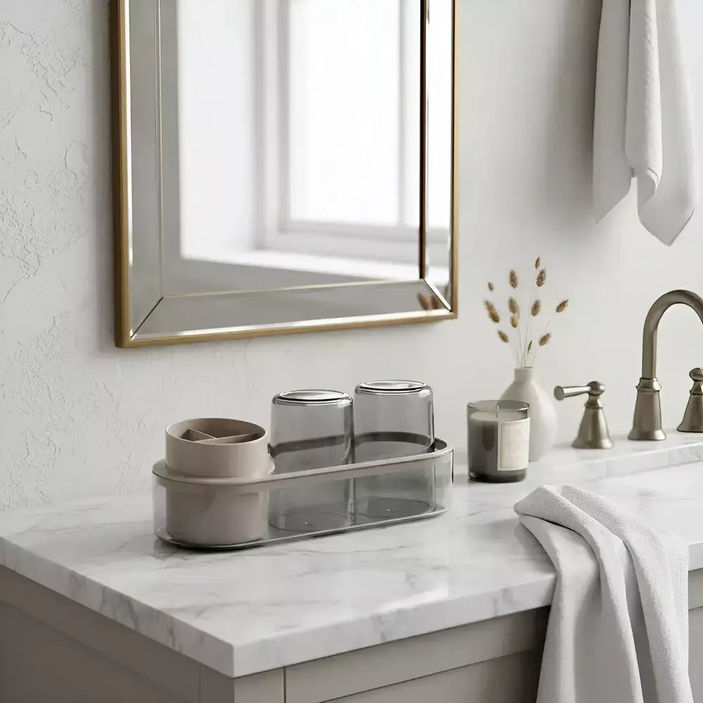Este organizador moderno es ideal para mantener cepillos, pasta dental y vasos siempre en su lugar 🪥🧴. Su diseño compacto y elegante combina con cualquier baño, optimizando el espacio sin perder estética ✨.