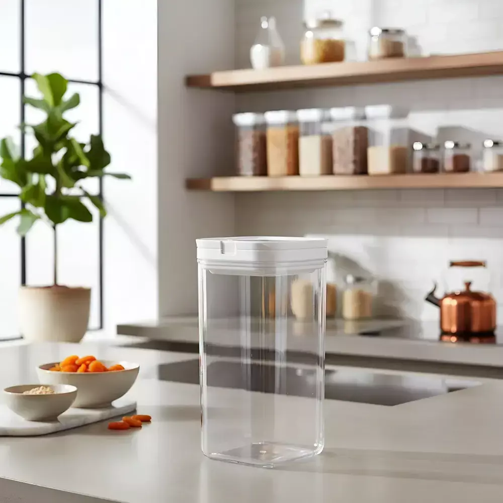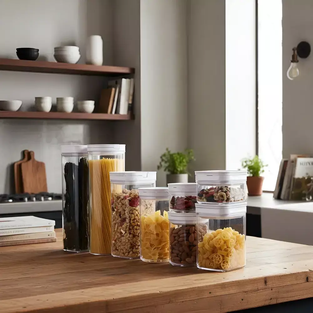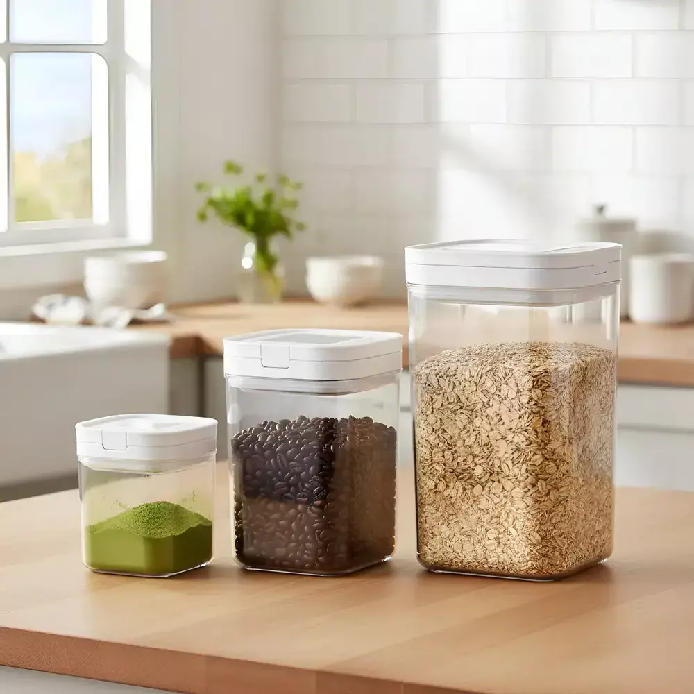 Organizá tu cocina con este práctico set de frascos herméticos con cierre a presión. Su diseño moderno y funcional es perfecto para conservar todo tipo de alimentos secos de manera segura y sin humedad.